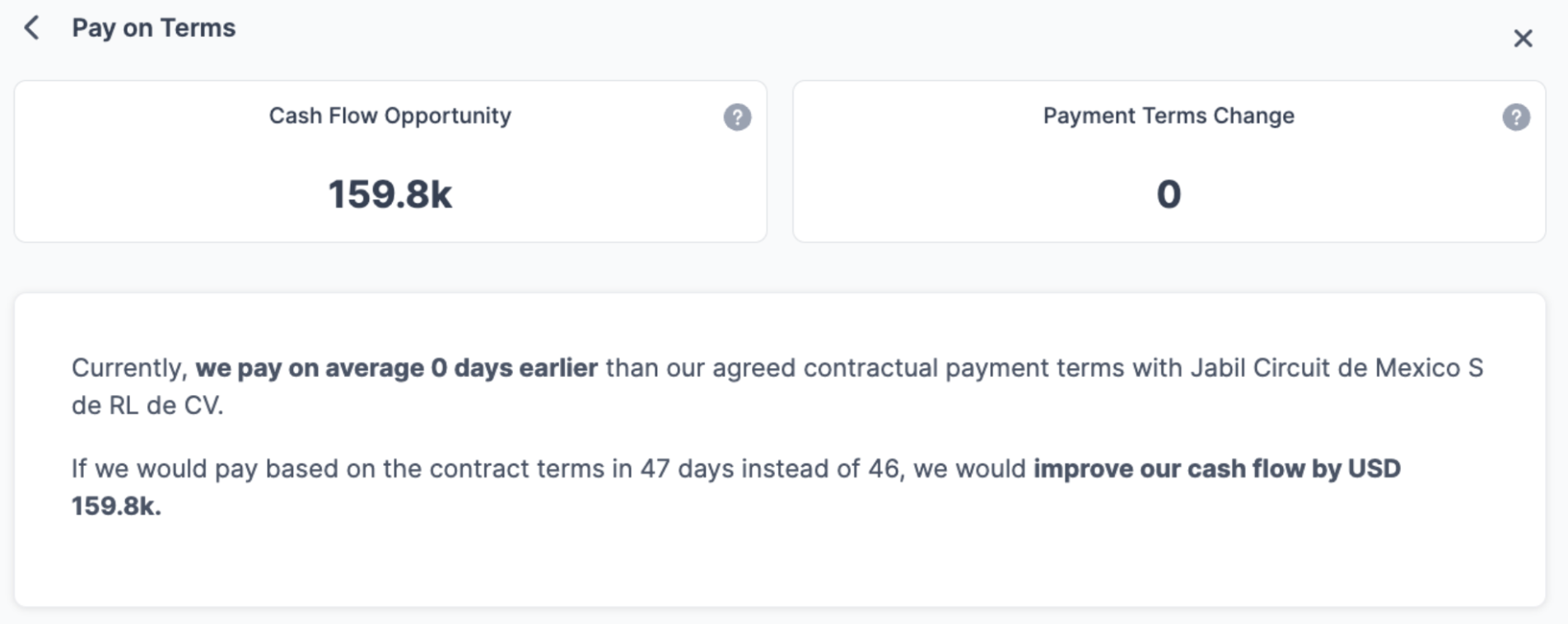 It compares our payment terms agreed in the contract with the supplier and our actual average days paid.